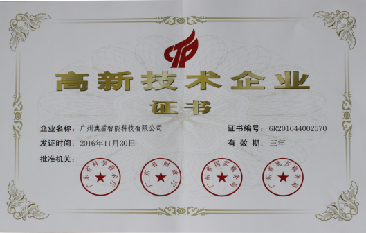 廣州澳盾榮獲高新技術(shù)企業(yè)認(rèn)定2017-03-23 16:56:52